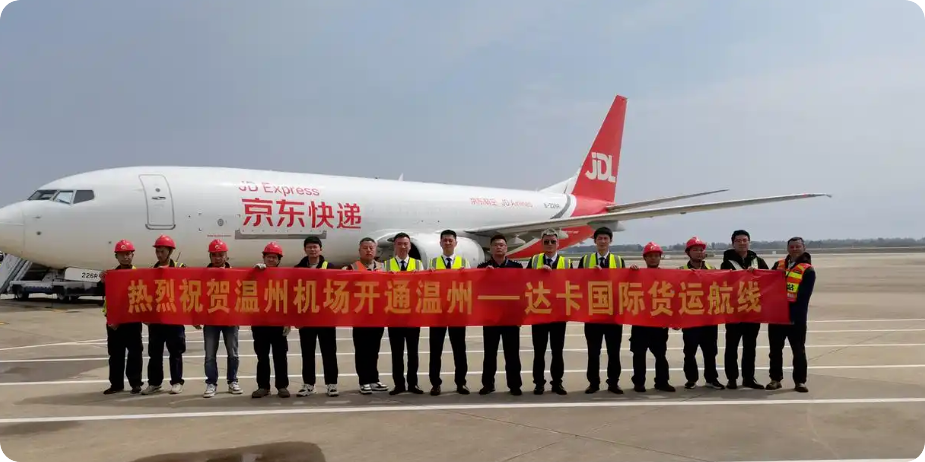 3月27日10时13分,京东航空JG2787国际货运航班从温州龙湾国际机场起飞,前往孟加拉国达卡哈兹拉特·沙迦拉国际机场,并于当日21时20分顺利降落在宁波栎社国际机场,标志着“温州—达卡—宁波”国际全货机航线正式开通。